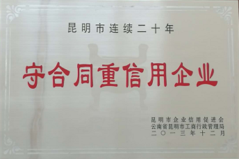 昆明市連續二十年守合同重信用企業